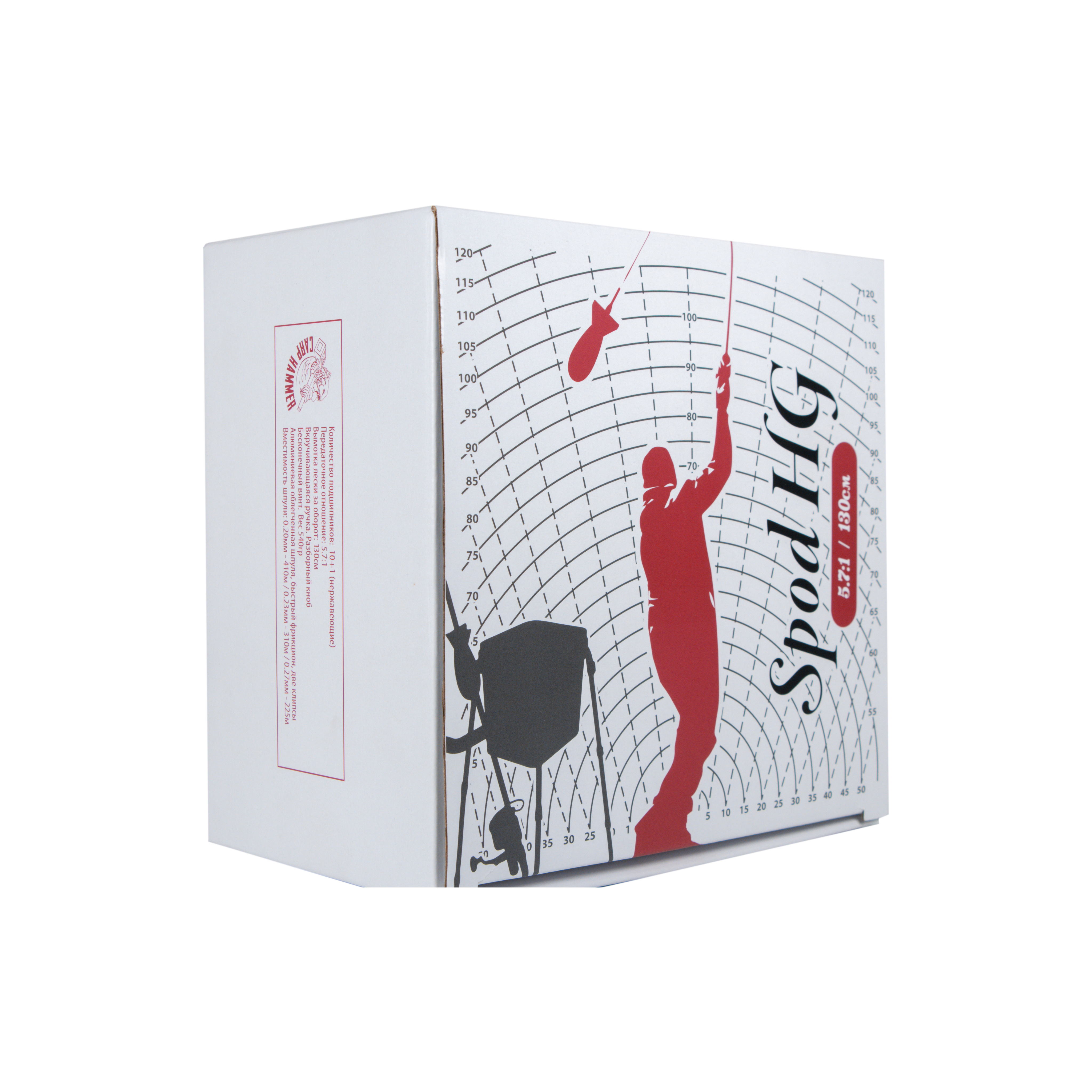 Версия специализированной катушки Carp HAMMER SPOD 8000. для работы с закормочными удилищами при забросах контейнеров типа «SPOD». Основное отличие от базовой модели, помимо дизайна, – увеличенное передаточное число механизма, позволяющее за один оборот ручки выбрать 130 сантиметров шнура. Данное свойство позволяет вести темповый закорм точки, что бывает важным в условиях соревнований. Шпуля «Long Cast» оснащена двумя подпружиненными клипсами и «быстрым» фрикционом. Дополнительная опция – запасная шпуля (в комплект не входит).