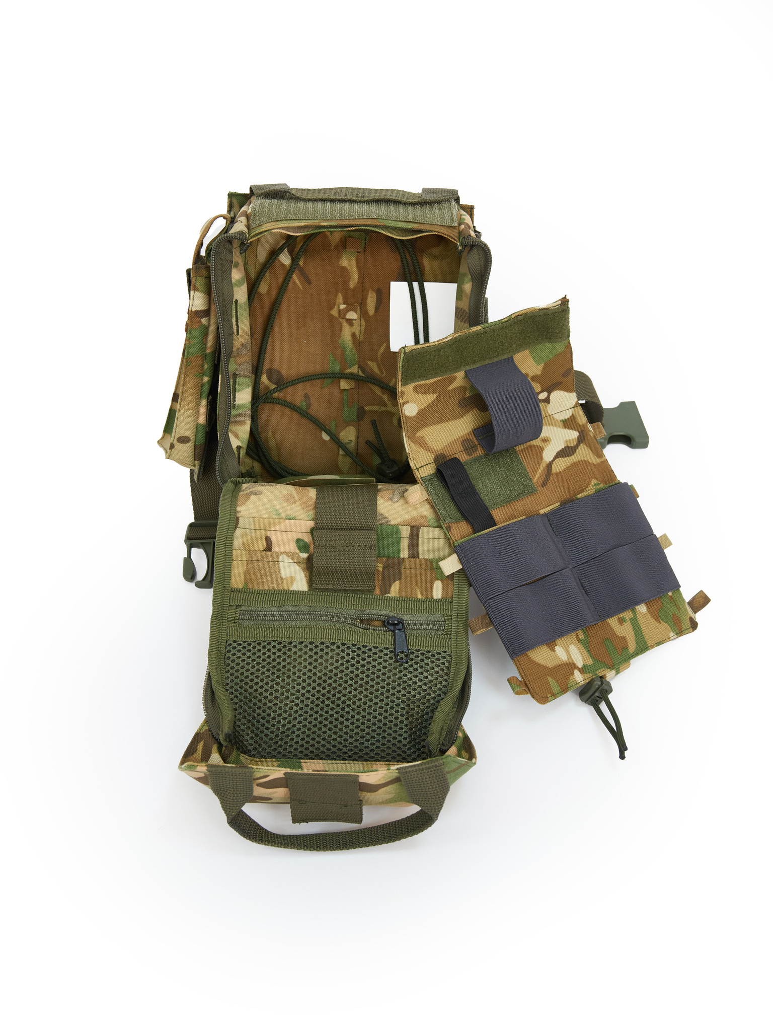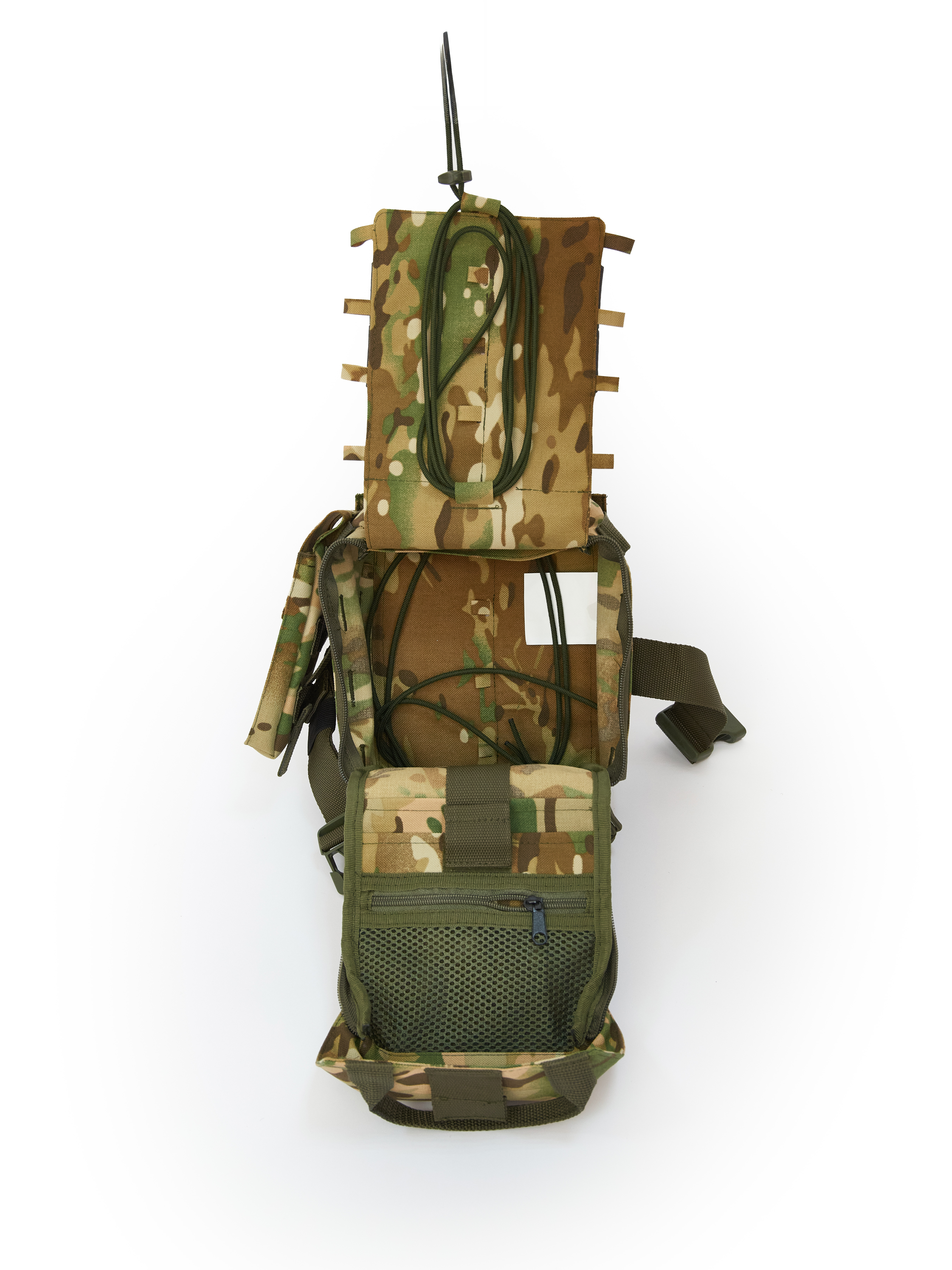 - Кострукция - отрывной, имеет внешние бортовые крепления молле и карман для мелкого снаряжения