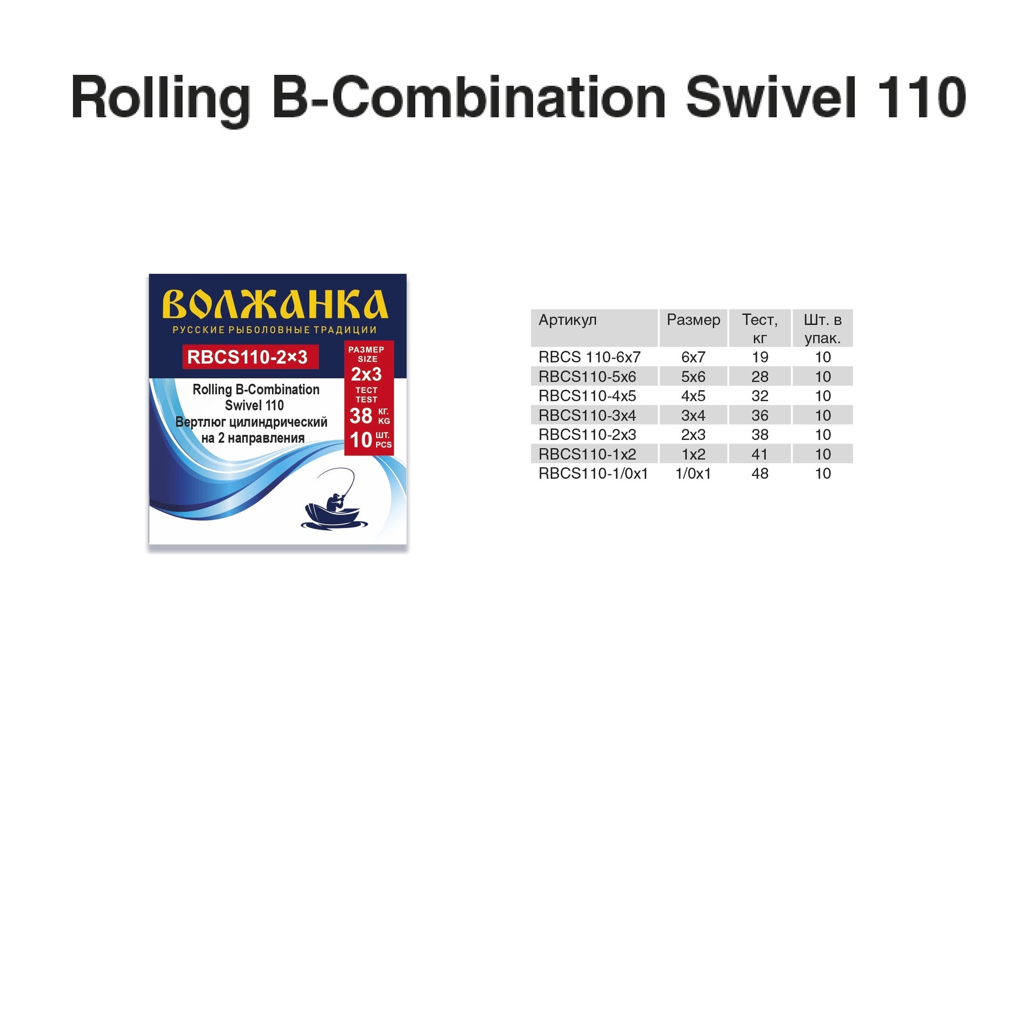 Вертлюг "Волжанка" Rolling B-Combination Swivel 110 # 1/0x1 тест 48кг (10шт/уп) по 5 упаковок
